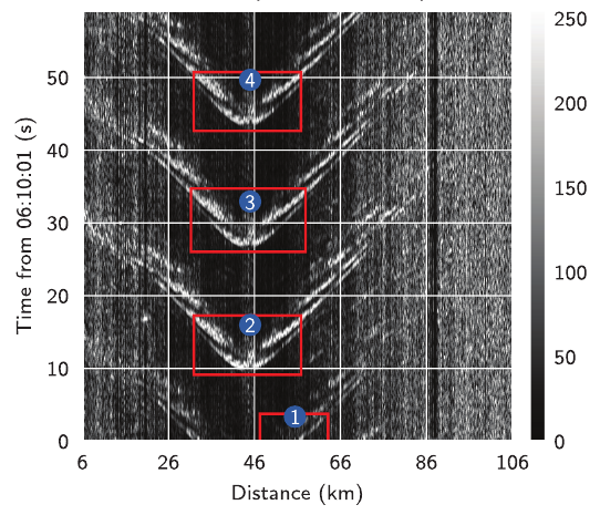 This study presents a three-stage pipeline: 1. Data enhancement using frequency-wavenumber and root-mean-square filtering. 2. Call detection in the time-space domain using four approaches: line-based detection (Hough transform, HT), density-based clustering (DBSCAN), template matching combined with clustering ™, and a deep-learning-based detector (YOLO). 3. Detection refinement using hyperbola fitting and a LightGBM classifier.
